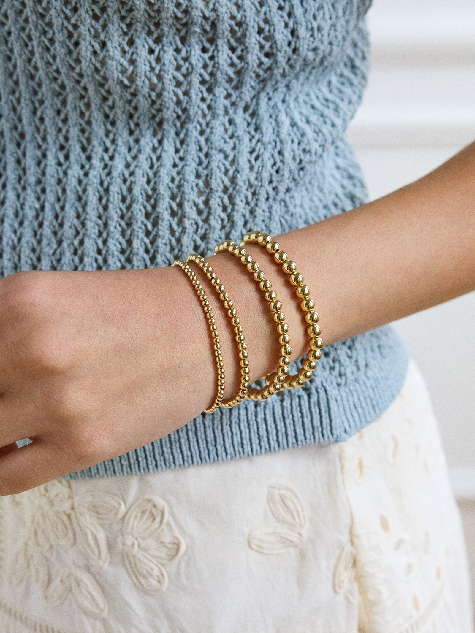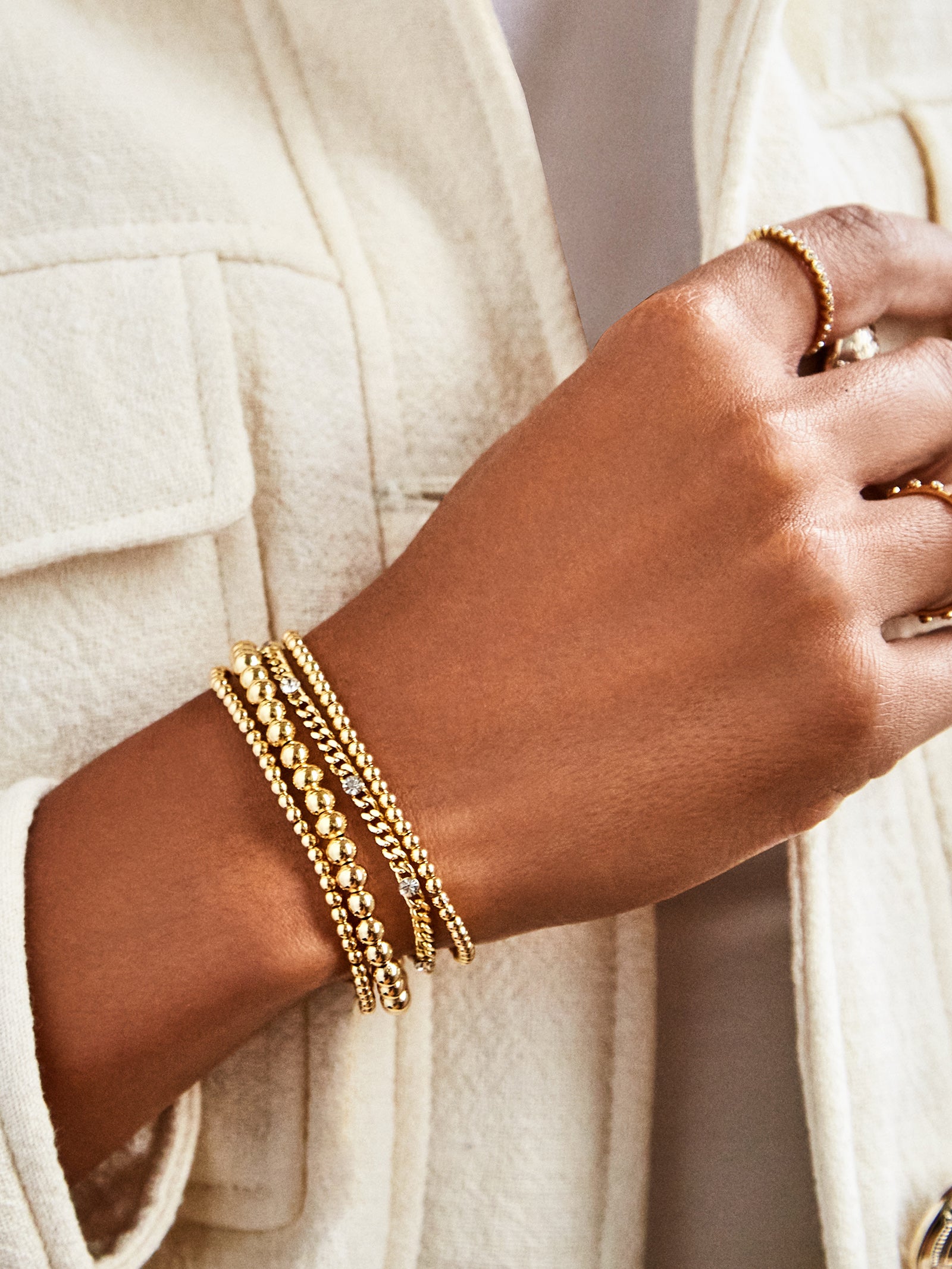 Our favorite bracelet silhouette — now available in a waterproof 14k gold material so you can sport your stack all day, every day.